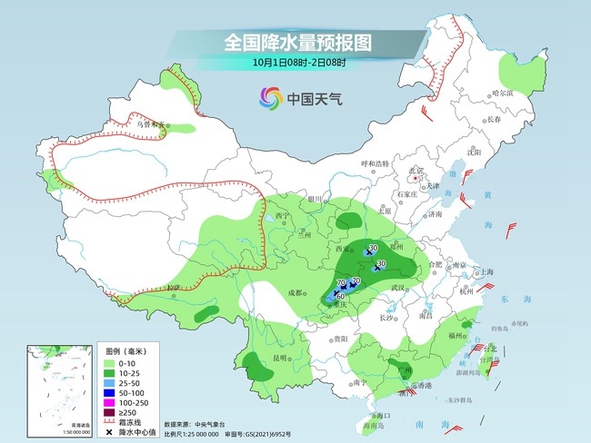 中国天气网讯 今天(10月1日)是一年一度的国庆节,也是中秋国庆假期的第三天,随着副热带高压再度北抬,四川盆地东北部至湖北西北部一带的降水将再度增强,陕西南部、四川东部等地局部或现暴雨。而由于冷空气进入短暂间歇期,未来两天,我国北方地区则以秋高气爽的天气为主,昼夜温差较大,夜间气温低,部分地区的气温或将创立秋以来新低。