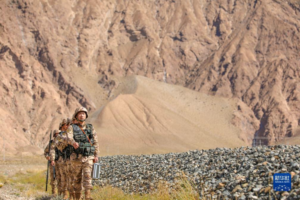 10月1日,武警青海总队海西支队官兵在青藏铁路沿线武装巡逻。