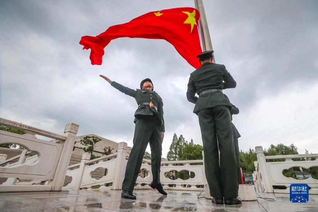 10月1日,陆军第72集团军某旅组织官兵举行升国旗仪式。