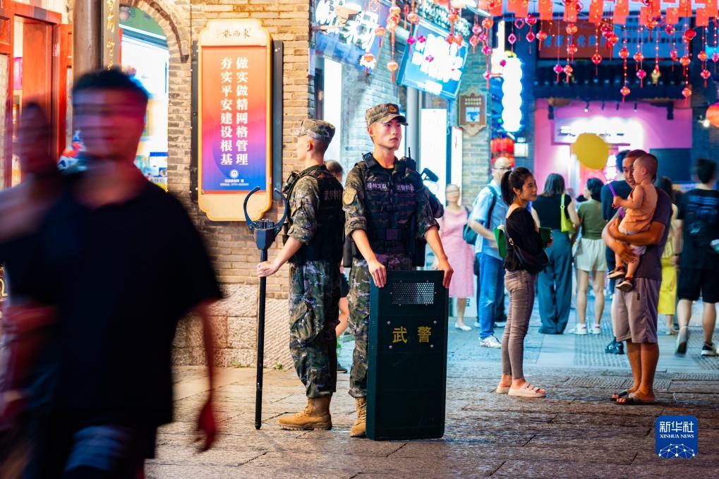 武警广西总队桂林支队官兵在桂林市东西巷商业区执勤(9月29日摄)。