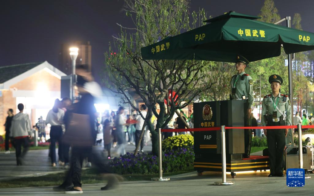 在第十四届中国(合肥)国际园林博览会现场,武警安徽总队合肥支队官兵在重点区域站岗执勤(9月30日摄)。