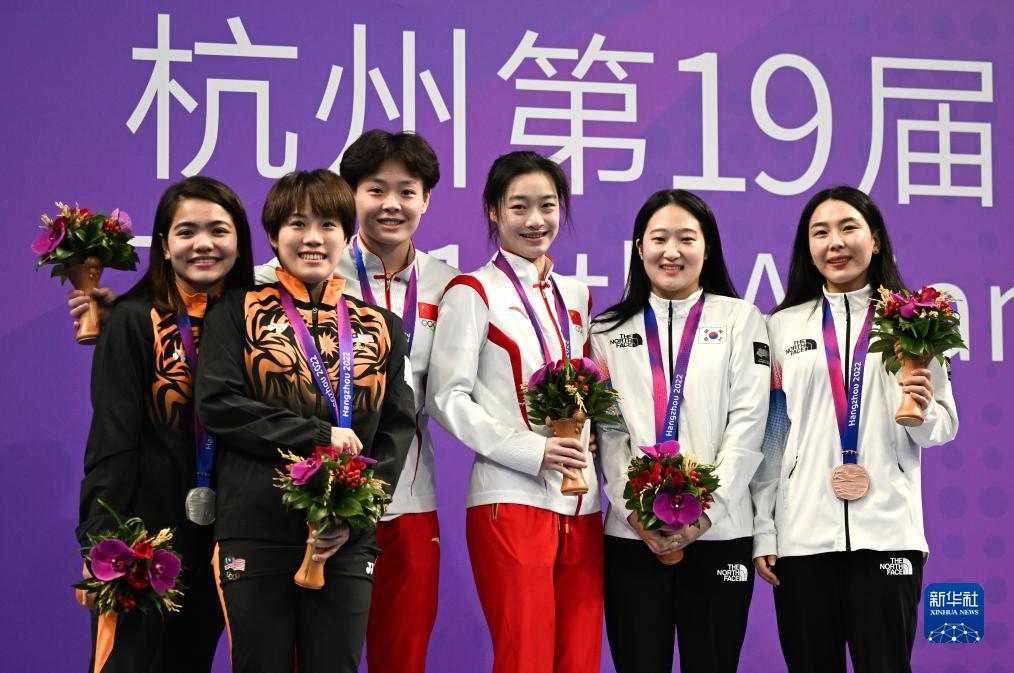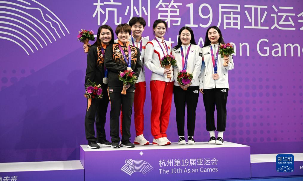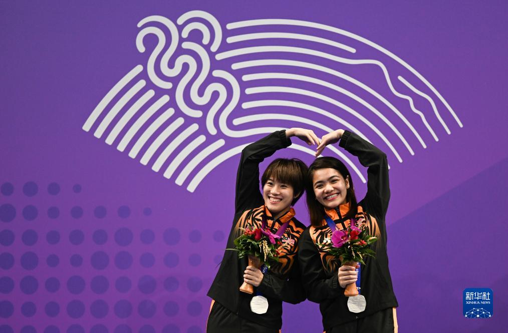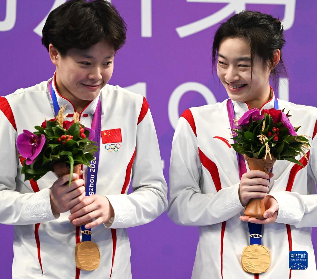 当日,杭州亚运会跳水项目女子双人3米跳板决赛在杭州奥体中心游泳馆举行。