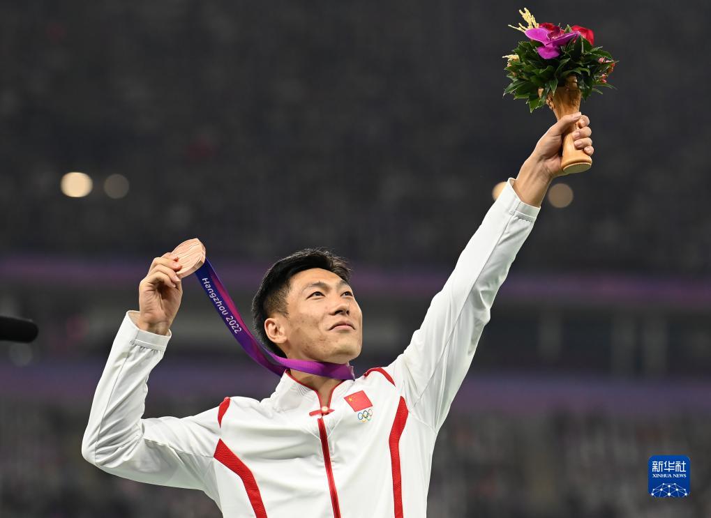 10月1日,季军中国选手石雨豪在颁奖仪式上。