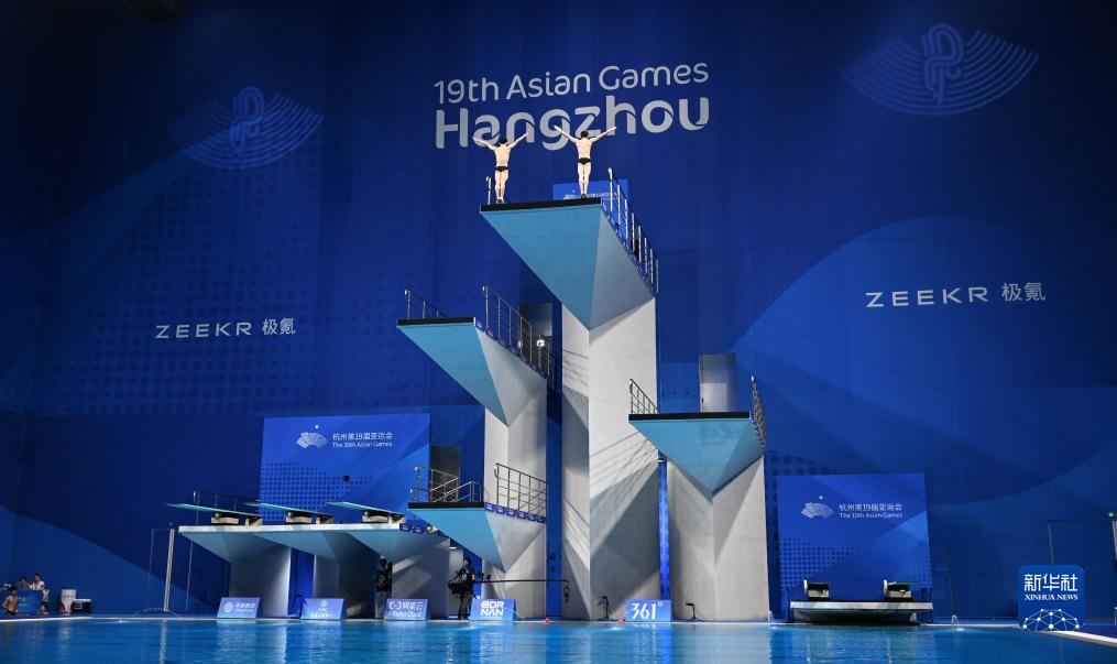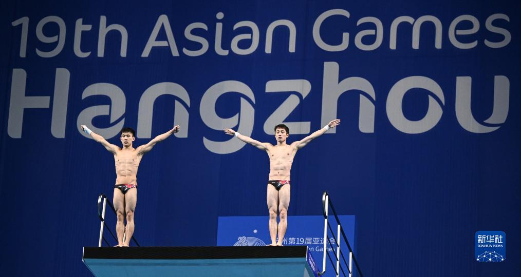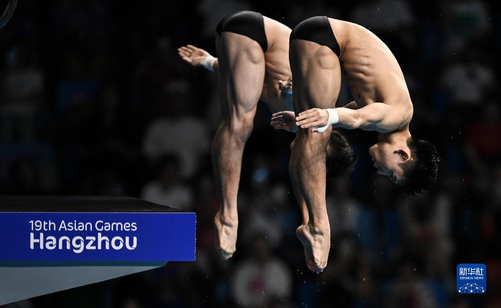 当日,杭州亚运会跳水男子双人10米跳台决赛在杭州奥体中心游泳馆举行。