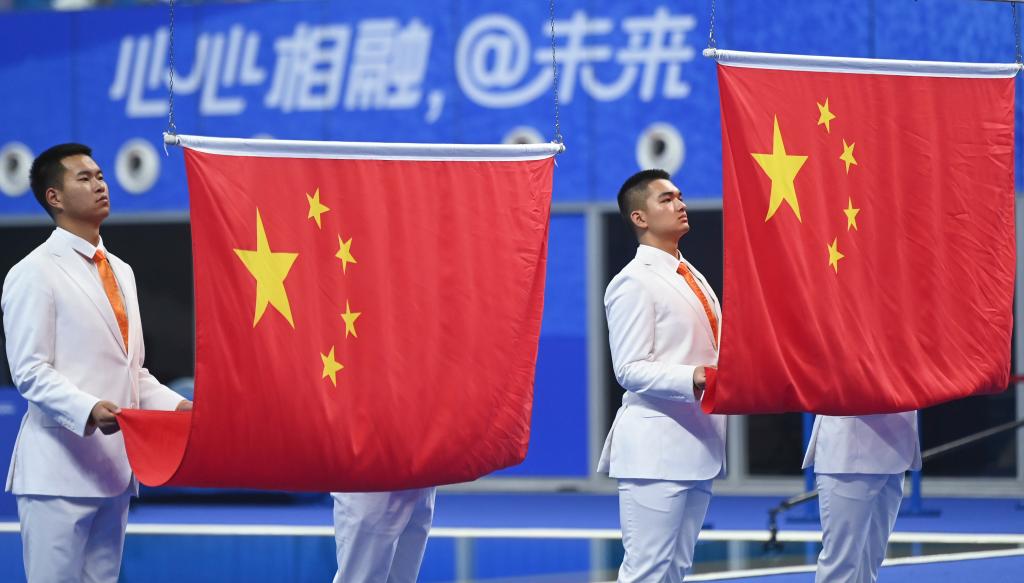 体育场馆里,国歌一次次响起