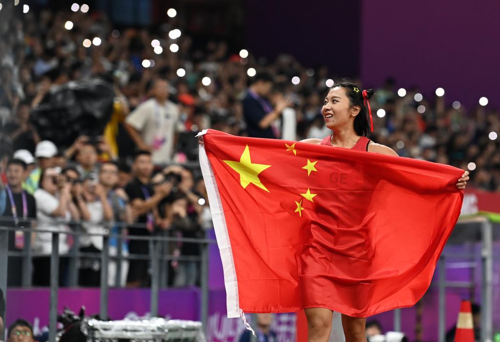 赛后,侯志慧面对新华社记者的镜头祝福祖国:
