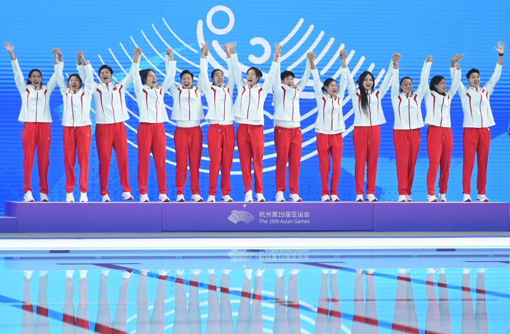 “我们为亚运会准备了两年,赢得这场比赛,非常开心。今天在比赛过程中有一些细节做得不是很好,但是我们大家都很团结,拿下这场比赛,算是给祖国庆祝生日了,祝大家国庆快乐。”中国女子水球队队长张婧说。