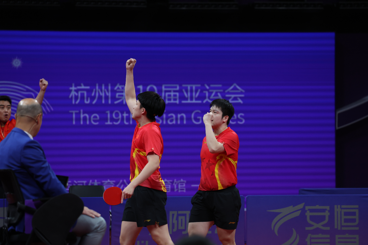 10月1日晚,杭州第19届亚运会乒乓球男子双打决赛,中国组合樊振东/王楚钦夺得金牌。