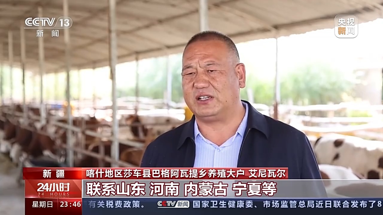 喀什地区莎车县巴格阿瓦提乡养殖大户 艾尼瓦尔:养牛,当时技术没掌握,我创业失败了。他知道我的困难以后,联系山东、河南、内蒙古、宁夏等好几个省份的养殖大户、专家帮助我,平台上开直播也是逄书记给我提的建议。