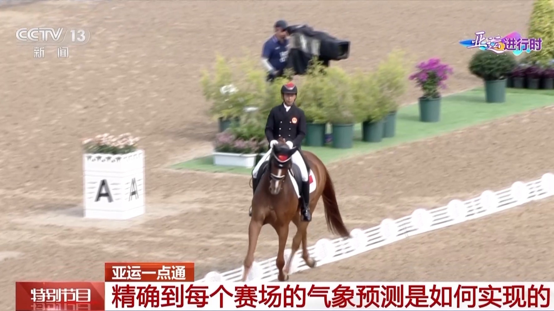 不仅如此,亚运气象保障还能做到“一馆一策”,就是针对56个竞赛的场馆,不同的赛事运用不同的监测手段和专业预报服务。马术场地就专门安装了两套舒适度观测设备,用来实时监测暑热压力指数,这个是专门给我们的特殊运动员赛马提供服务的。