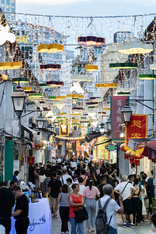图为中秋国庆长假期间澳门街头客流畅旺。澳门特区旅游局供图