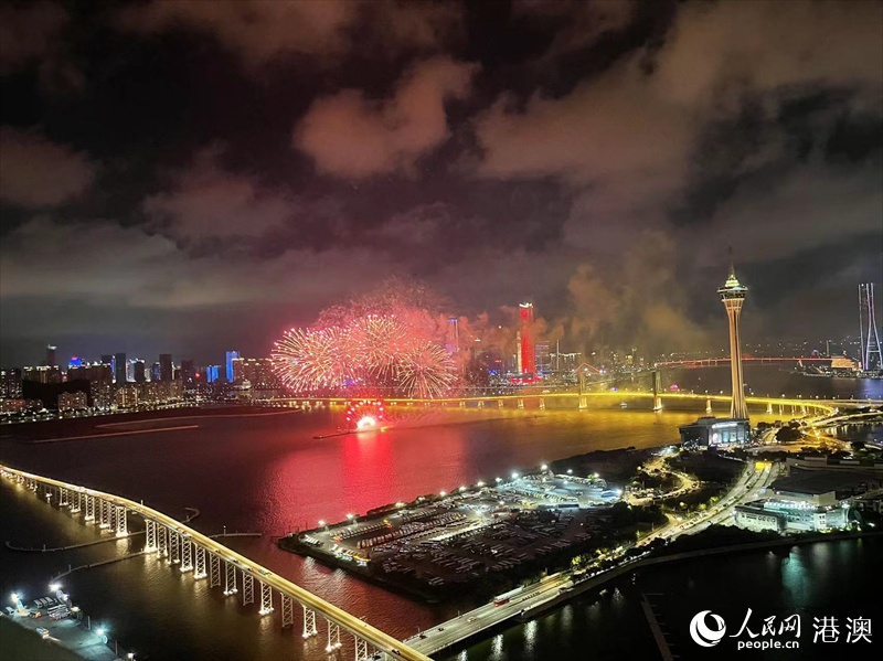 图为10月1日晚澳门夜空烟花绽放。人民网记者 富子梅摄