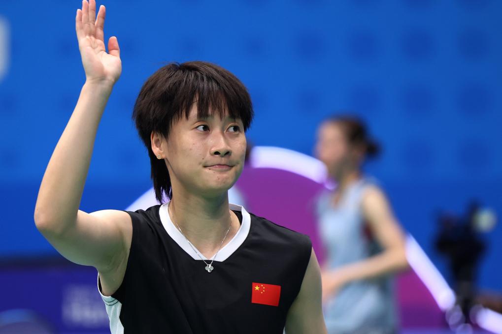 10月3日,中国选手陈雨菲在获胜后向观众致意。新华社记者陈斌摄