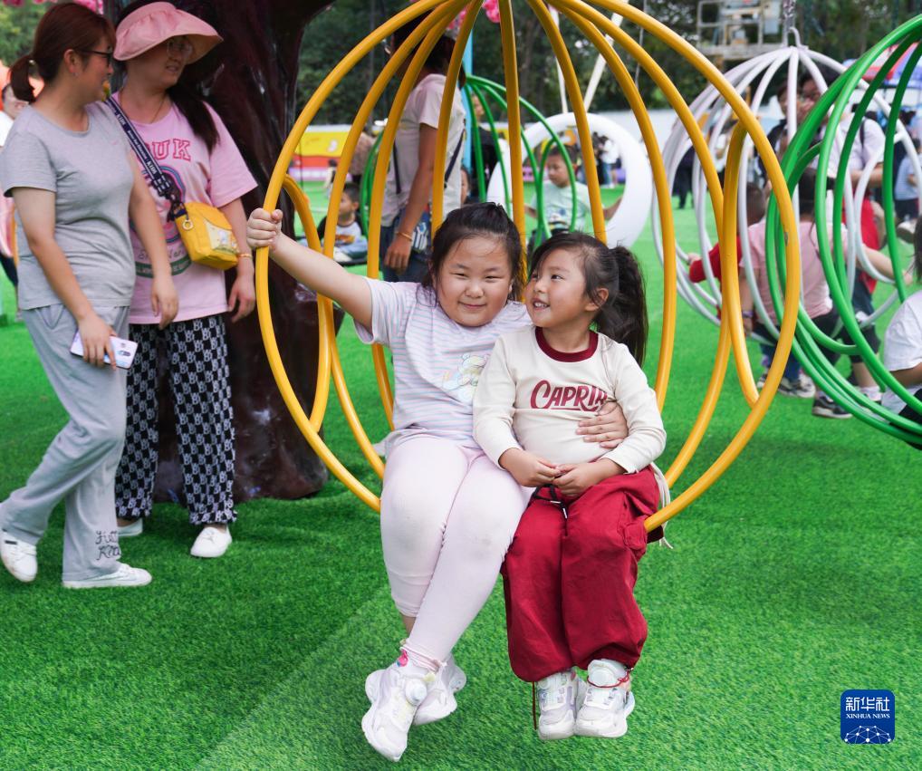 10月3日,孩子们在山东省邹平市一家游乐园游玩。