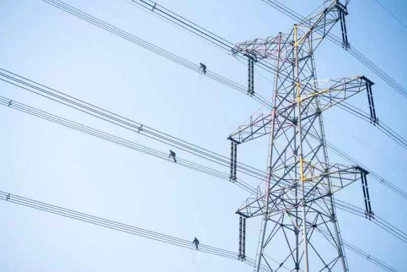 10月3日,500千伏青泉线跨越锡宜高速的区段,检修人员利用高空走线的方式排查导地线隐患,确保国庆用电高峰期间,跨越高速铁路、高速公路和重要输电通道的架空输电线路“三跨”区段安全无虞,稳定运行。