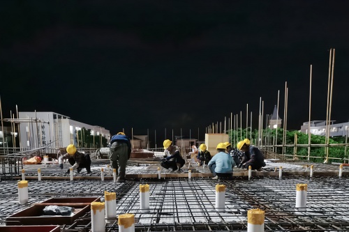 目前,项目工人正在进行二层梁、柱、楼面浇筑等作业,他们始终保持着高度的工作热情和责任心,每天早早来到施工现场,紧密配合,忙碌在各个施工点,确保施工进度和安全质量。