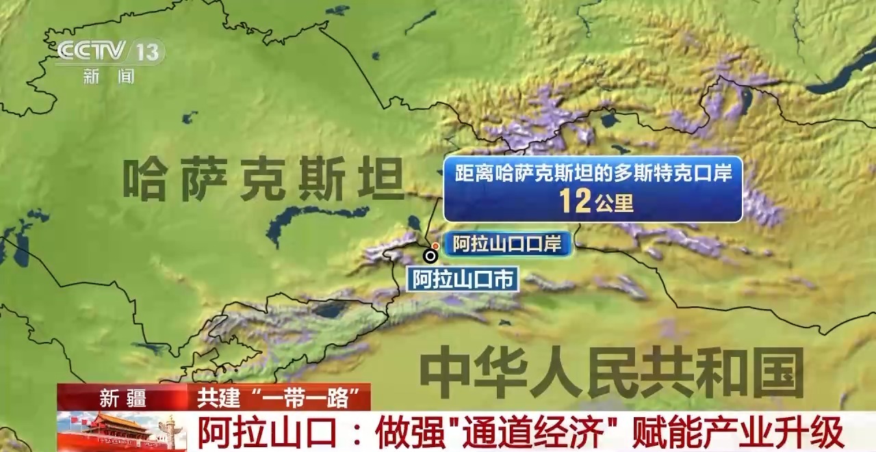 阿拉山口市毗邻哈萨克斯坦,处于丝绸之路经济带物流枢纽节点。阿拉山口口岸距离哈萨克斯坦的多斯特克口岸只有12公里,通过这一通道,中国商品可快速到达中亚及欧洲国家。