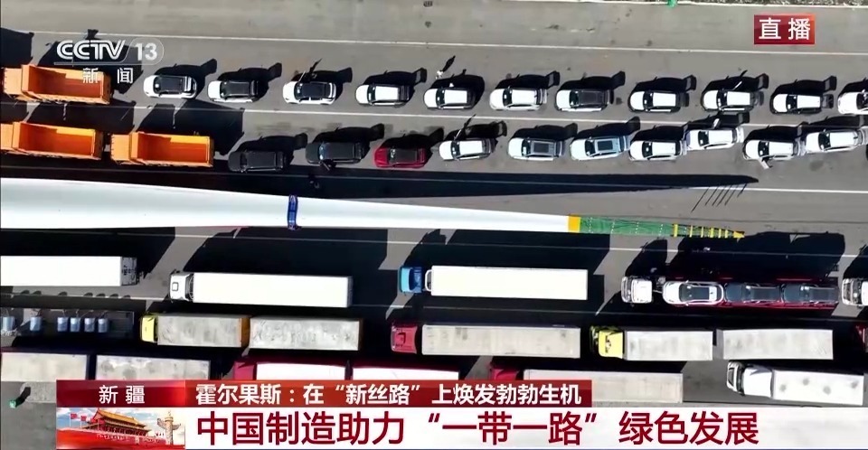 总台记者 崔宁:我现在所在的位置就是霍尔果斯公路口岸的货运通道。按照惯例,每年的10月1日至3日,中哈两国之间的公路口岸会闭关三天。今天是开关后的首个通行日。现场可以看到,有很多货车还有“中国制造”的汽车都在这里通关出境,运往中亚各国。在旁边,通道的拓展工程也在加快施工,传递出当地的发展生机。