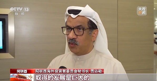 阿联酋海外投资者委员会秘书长 贾迈勒:我认为中国在经济领域取得的发展是巨大的。中国不仅实现了自身国内生产总值稳步增长,还为其他国家的发展提供了可供借鉴的参考。