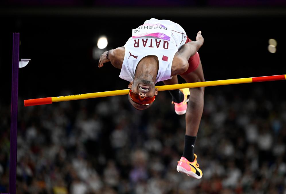 男子跳高金牌的争夺在韩国选手禹相赫和卡塔尔选手巴希姆中展开,巴希姆是东京奥运会冠军,同时也是亚洲纪录和亚运会纪录保持者。最终,巴希姆冲击2米37失败,以2米35平赛会纪录的成绩夺冠。