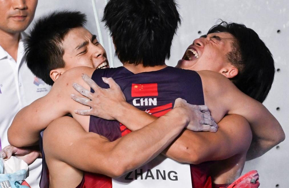 原标题:包揽团体速度接力双金 中国队首次摘得亚运攀岩金牌