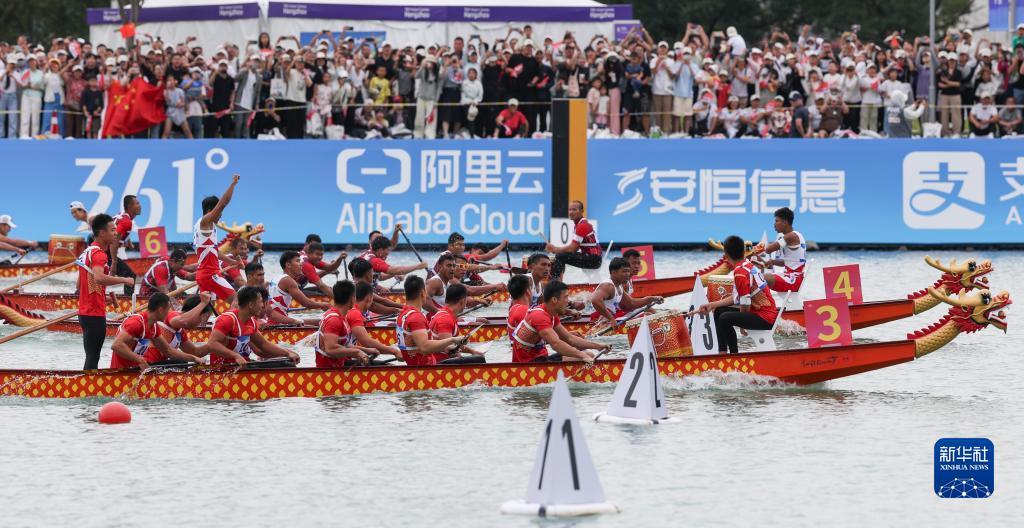 当日,在浙江温州龙舟运动中心进行的杭州亚运会男子组12人龙舟500米直道竞速赛中,中国队以2分09秒152的成绩获得冠军。印度尼西亚队获得亚军,泰国队获得季军。