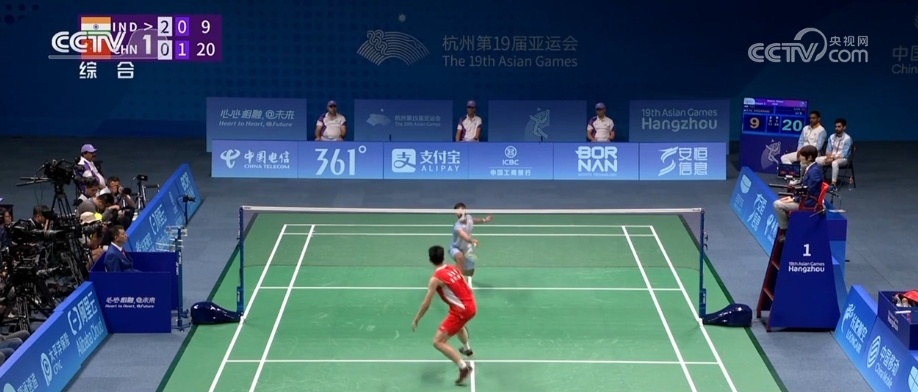 10月1日夜晚,杭州亚运会羽毛球男子团体决赛在滨江体育馆举行。当中国男团大比分0∶2落后印度时,赛场响起了一首鼓励逆流而上、不放弃的歌曲《逆战》。