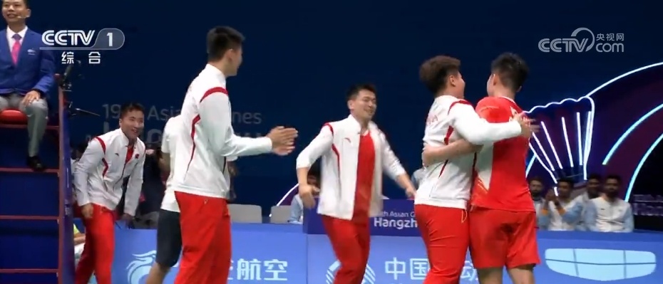 最终,中国男团以总比分3∶2逆转战局战胜印度队,夺得金牌。男团拿下决胜局的瞬间, 一首《我爱你中国》将赛场气氛推向高潮。