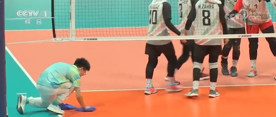 起身疾跑、单膝下蹲、双手擦拭,整套动作一气呵成,略带汗渍的地面马上恢复光泽。观看亚运会排球比赛的观众对他们可能并不陌生,他们就是在排球比赛过程中负责擦试场地地面的专业志愿者,大家又亲切地称他们为“快擦手”。
