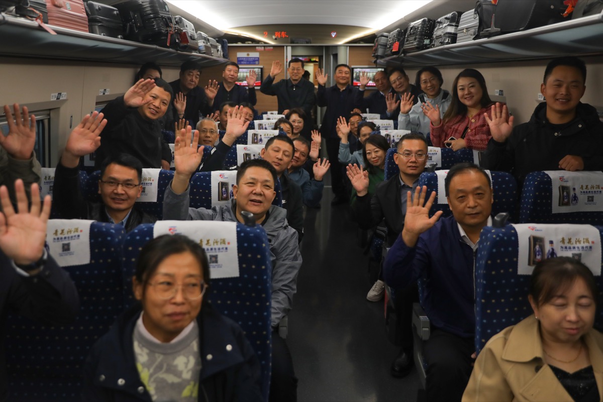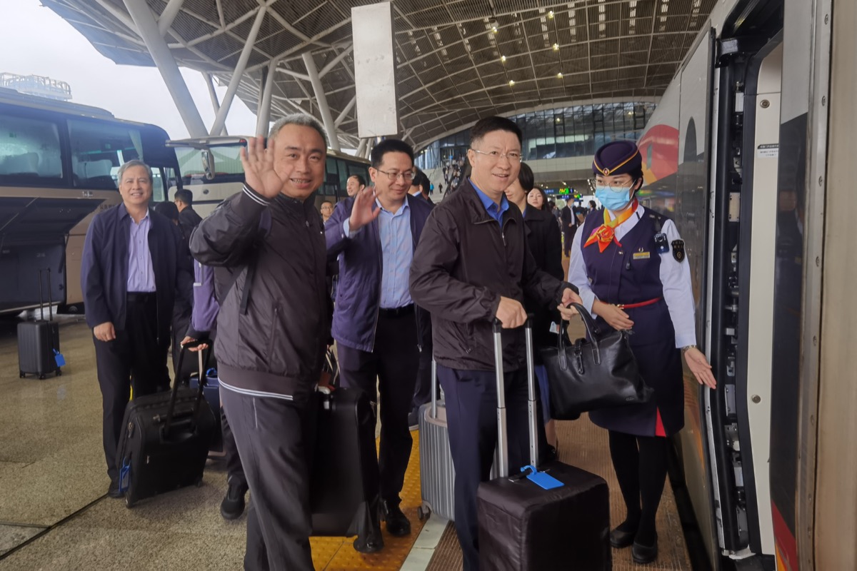 10月7日8时20分,肩负1100万荆楚职工的重托和期待,出席中国工会十八大的湖北代表团由武汉站登上复兴号列车,启程赴京。(工人日报-中工网记者 张翀 摄)
