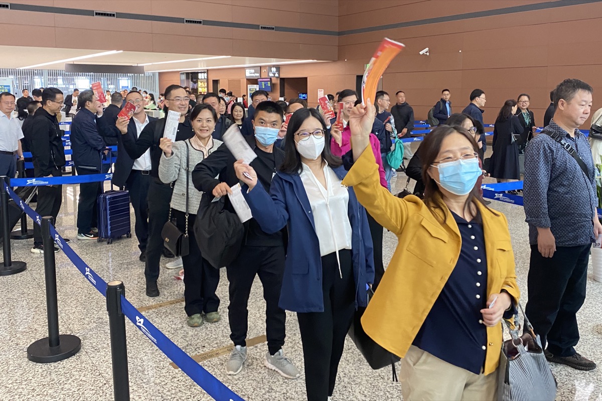 10月7号上午,四川代表团104名代表抵达天府国际机场,准备乘坐3U3864航班赴京参会。(工人日报-中工网记者 李娜 摄)