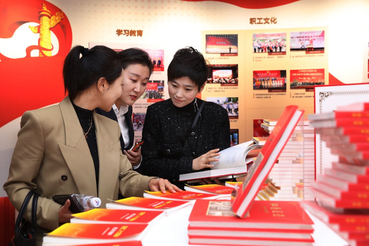 10月6日下午,在赴京出席中国工会十八大前一天,陕西省代表团的代表们参观学习“不忘初心 砥砺前行—— 新时代陕西工会工作主题展”。(工人日报-中工网通讯员 鲜康 摄)
