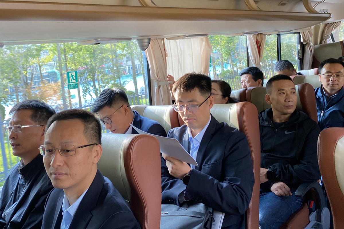 10月7日上午,在前往兰州中川机场的大巴车上,甘肃代表团的一名代表正在阅读中国工会十八大的相关会议资料。 (工人日报-中工网通讯员 茹佳佳 摄)