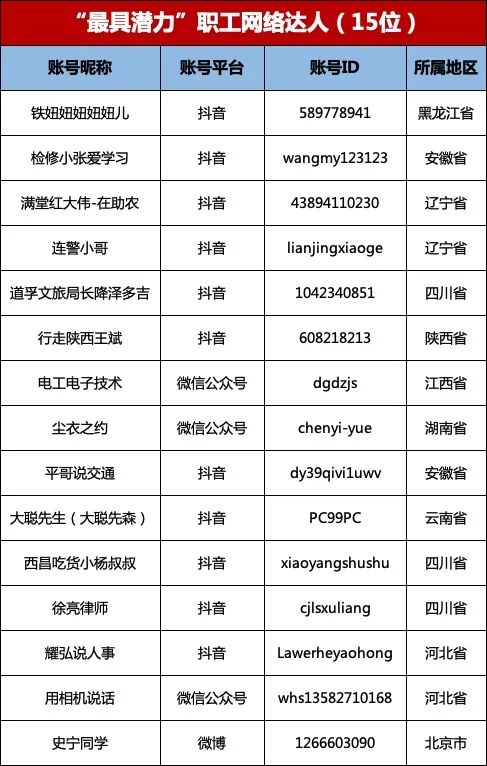 结果公布!2023年全国正能量职工网络达人征集活动榜单来啦!