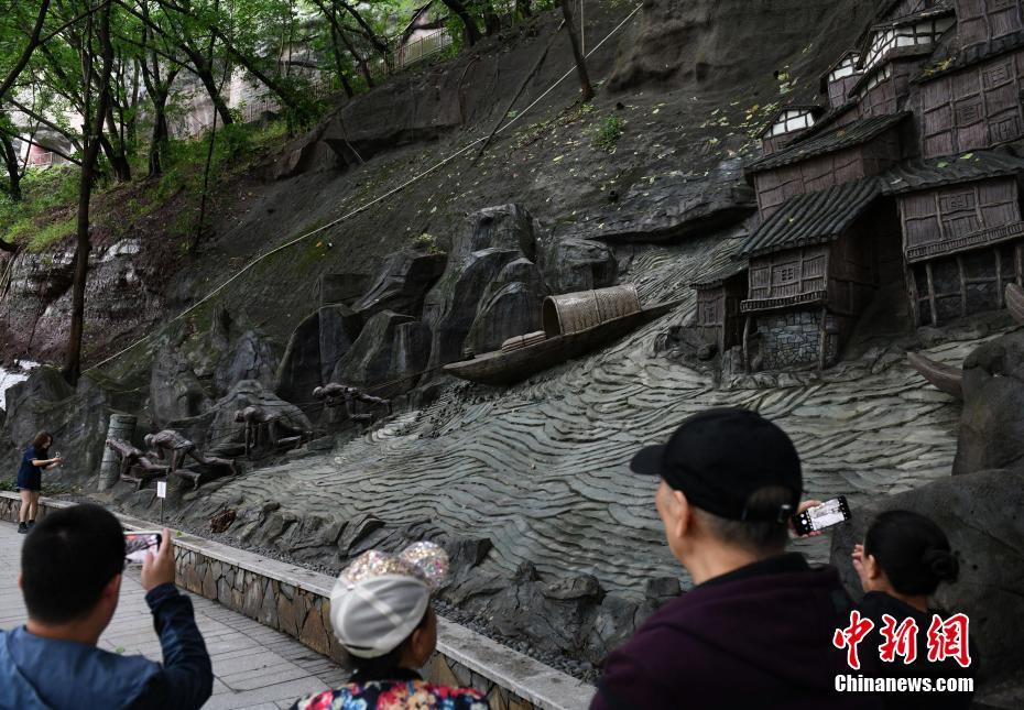 图为重庆临崖峭壁上的巨型艺术浮雕吸引市民打卡。