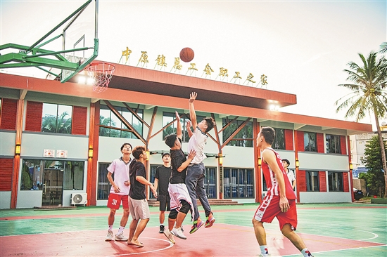 职工书屋、羽毛球区、台球区、乒乓球区、图书室、棋牌室、健身房、商业区……走进三亚机场“职工之家”,室内功能区整洁温馨,室外球场占地广阔,下班后来休闲娱乐的职工们络绎不绝。
