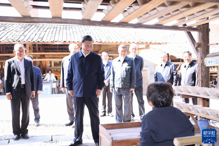 10月10日至13日,中共中央总书记、国家主席、中央军委主席习近平在江西考察。这是11日上午,习近平在景德镇市陶阳里历史文化街区明清窑作群考察。新华社记者 谢环驰 摄