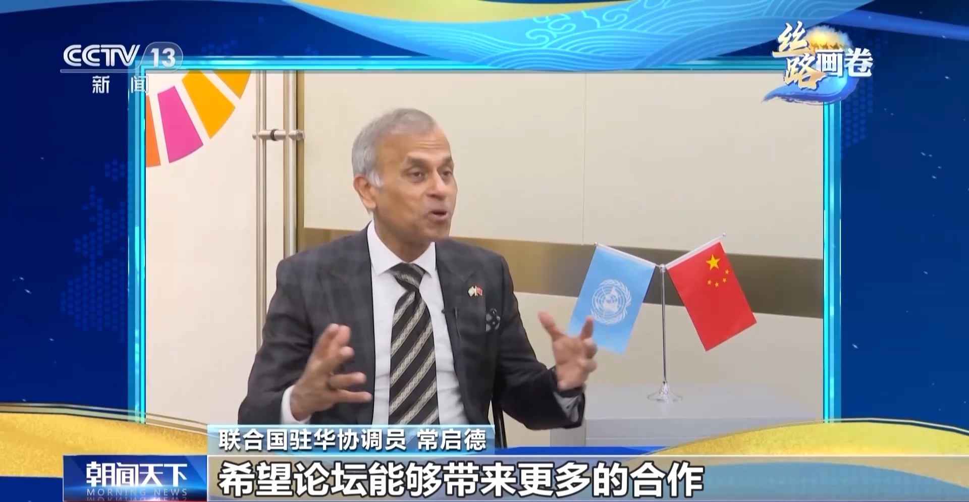 联合国驻华协调员 常启德:我希望第三届“一带一路”国际合作论坛取得全面成功。希望论坛能够带来更多的合作、更多的伙伴关系、更好维护多边主义,采取更多举措确保我们在2030年之前实现可持续发展目标,并实现一个和平、更加繁荣、更加发展,不同国家和人民之间有更多共情与关心的美好愿景。