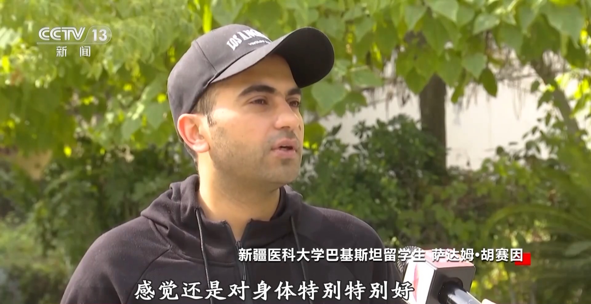 新疆医科大学巴基斯坦留学生 萨达姆•胡赛因:“一带一路”来了以后,对我们国家和老百姓也有很大的帮助,主要是中国的医生过去那边儿。我是前面胳膊拉伤,中医医生就给我揉一揉,拍我的这个肩膀胳膊拍了差不多200次,后面拔罐儿,做了一次,我就基本上没疼了。我觉得这个很神奇。