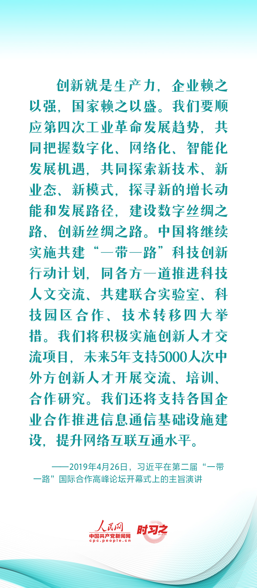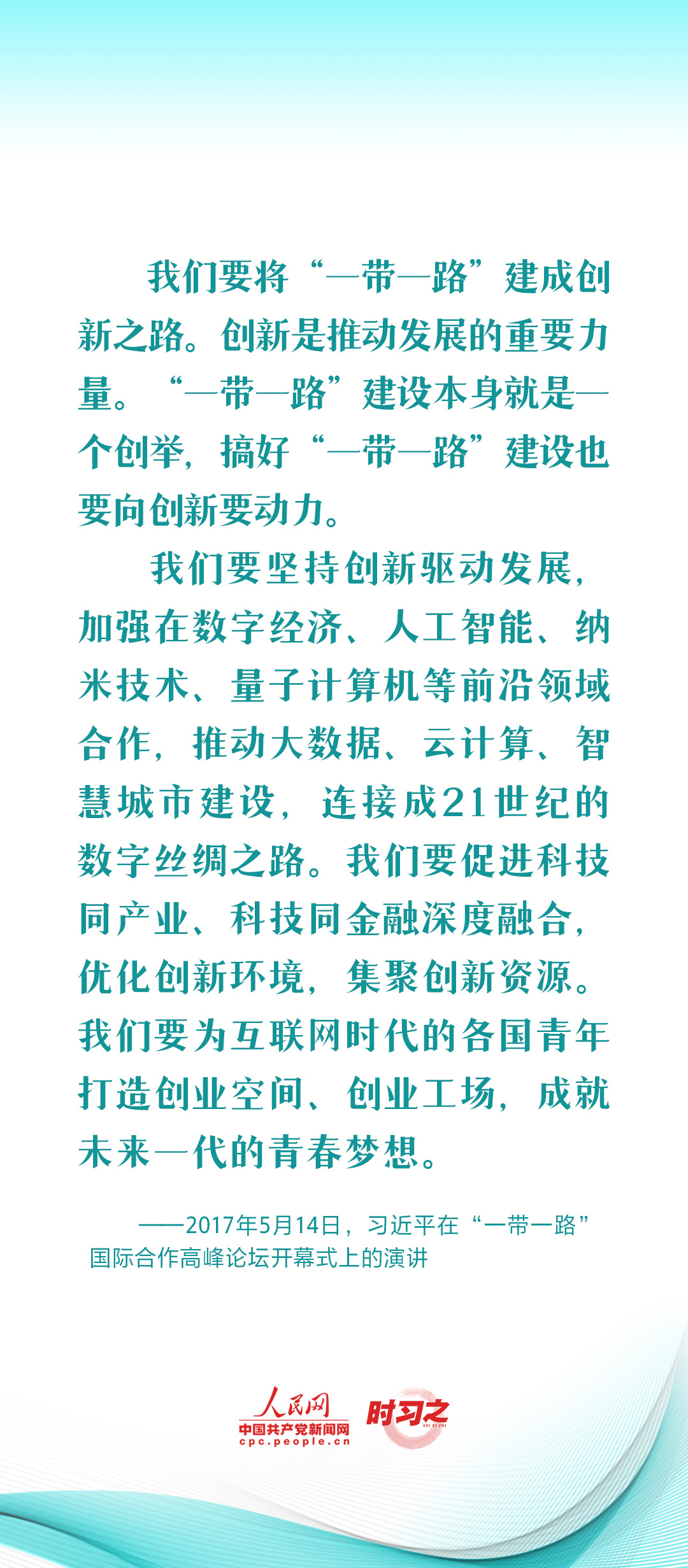 “‘一带一路’建设本身就是一个创举,搞好‘一带一路’建设也要向创新要动力。”习近平主席多次强调坚持创新驱动发展的重要性,推动建设21世纪“数字丝绸之路”。