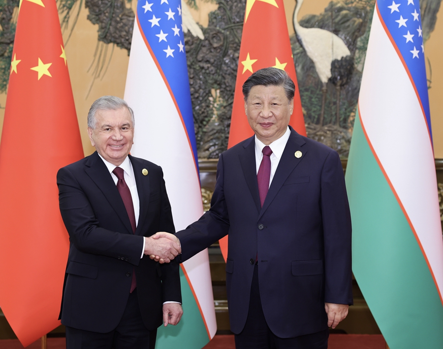 习近平指出,今年5月,我们在西安成功会晤,就两国关系发展达成的重要共识正在得到全面落实。中国正在以中国式现代化全面推进强国建设、民族复兴。乌方出台“乌兹别克斯坦-2030”战略。两国发展目标相似,理念契合。中方愿以共建“一带一路”倡议提出10周年为契机,同乌方在国家现代化进程中互学互鉴、相互支持、彼此成就,携手建设中乌命运共同体,为地区和平和繁荣注入更多确定性和正能量。