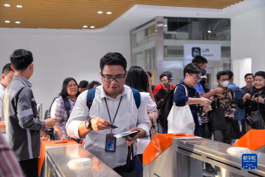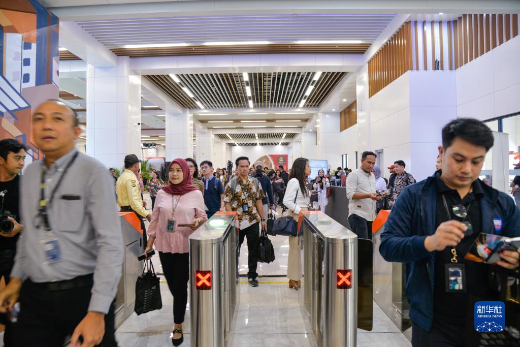 10月17日,在印度尼西亚万隆德卡鲁尔站,乘客刷票出站。新华社记者 徐钦 摄
