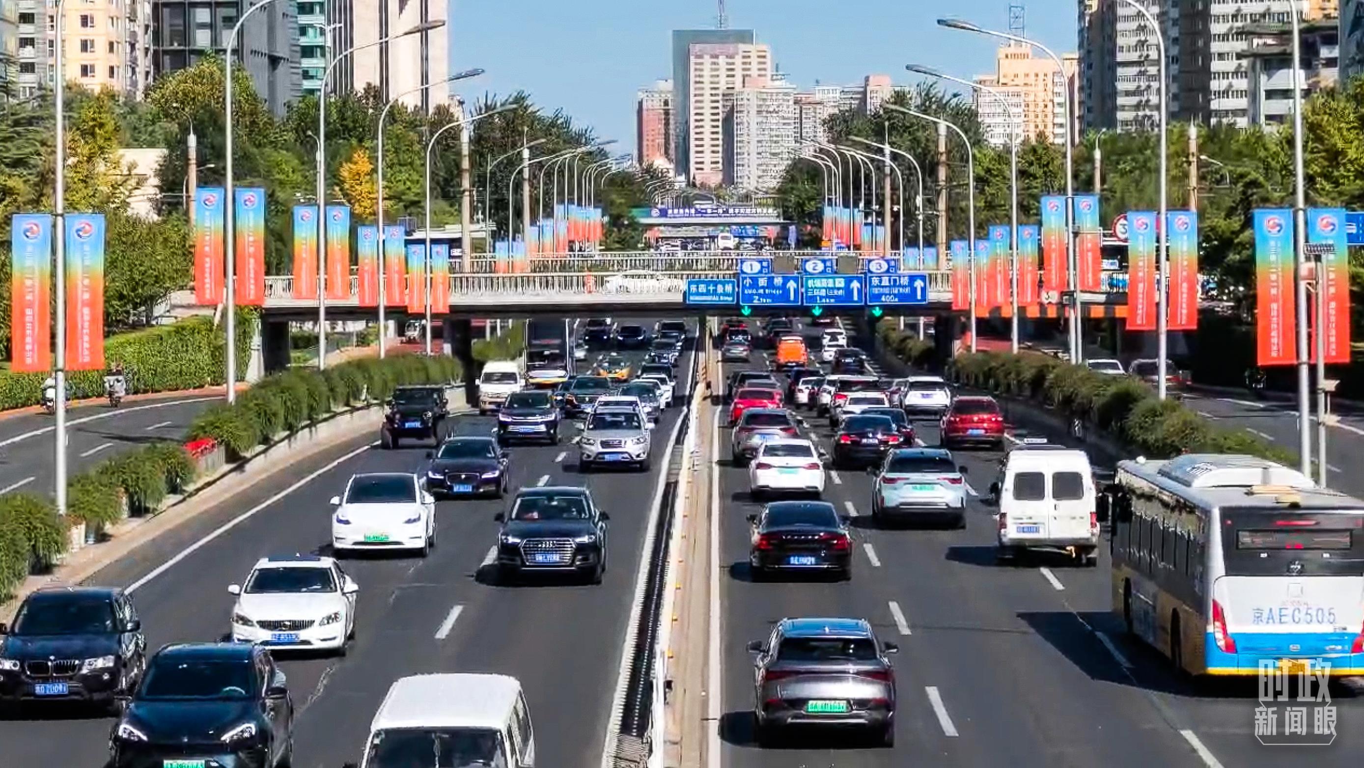 △北京街头悬挂的高峰论坛旗帜。(总台央视记者陆泓宇拍摄)