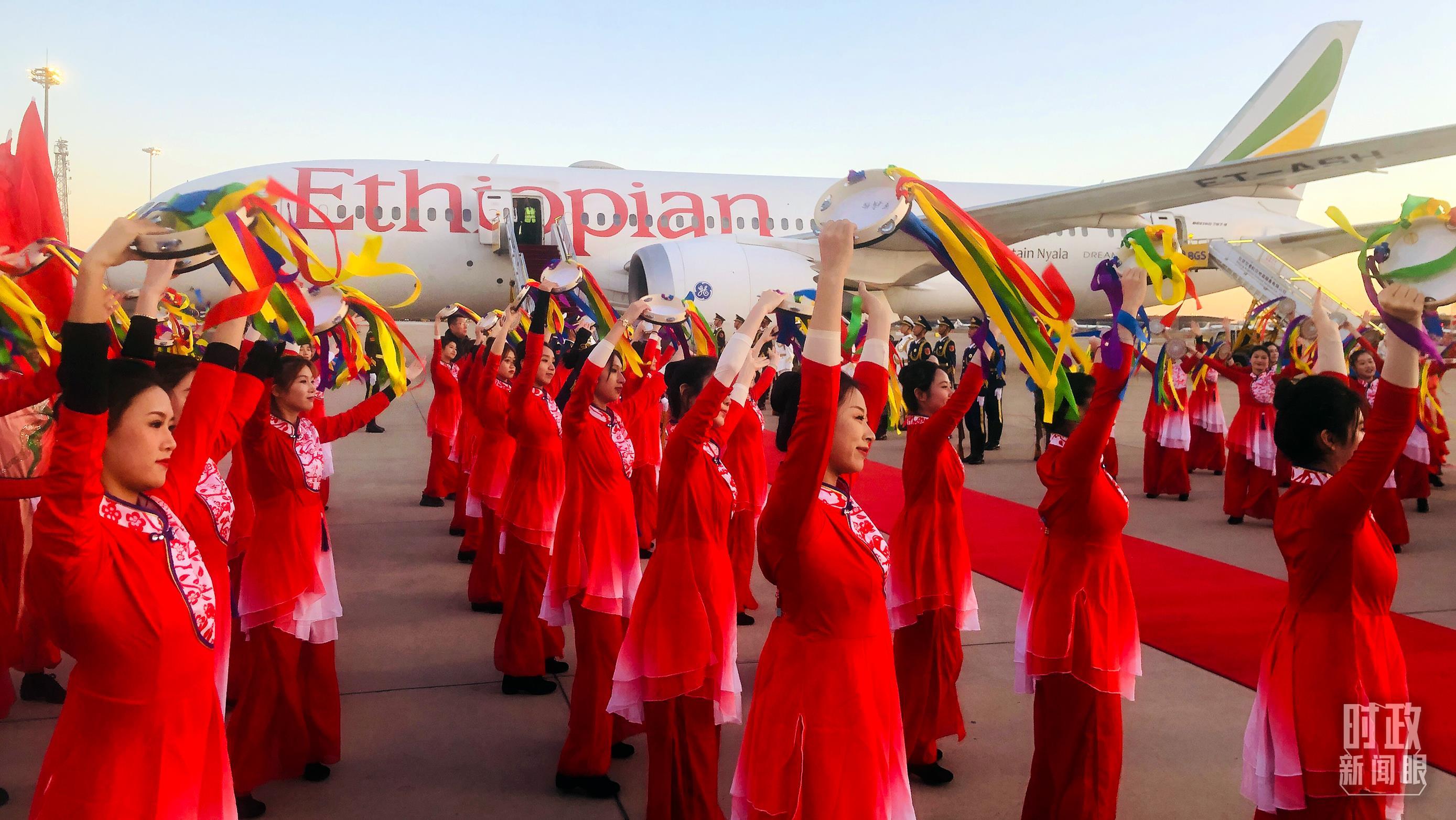 △16日早晨,埃塞俄比亚总理阿比抵达北京,这是机场迎宾仪式。(总台央视记者聂继承拍摄)