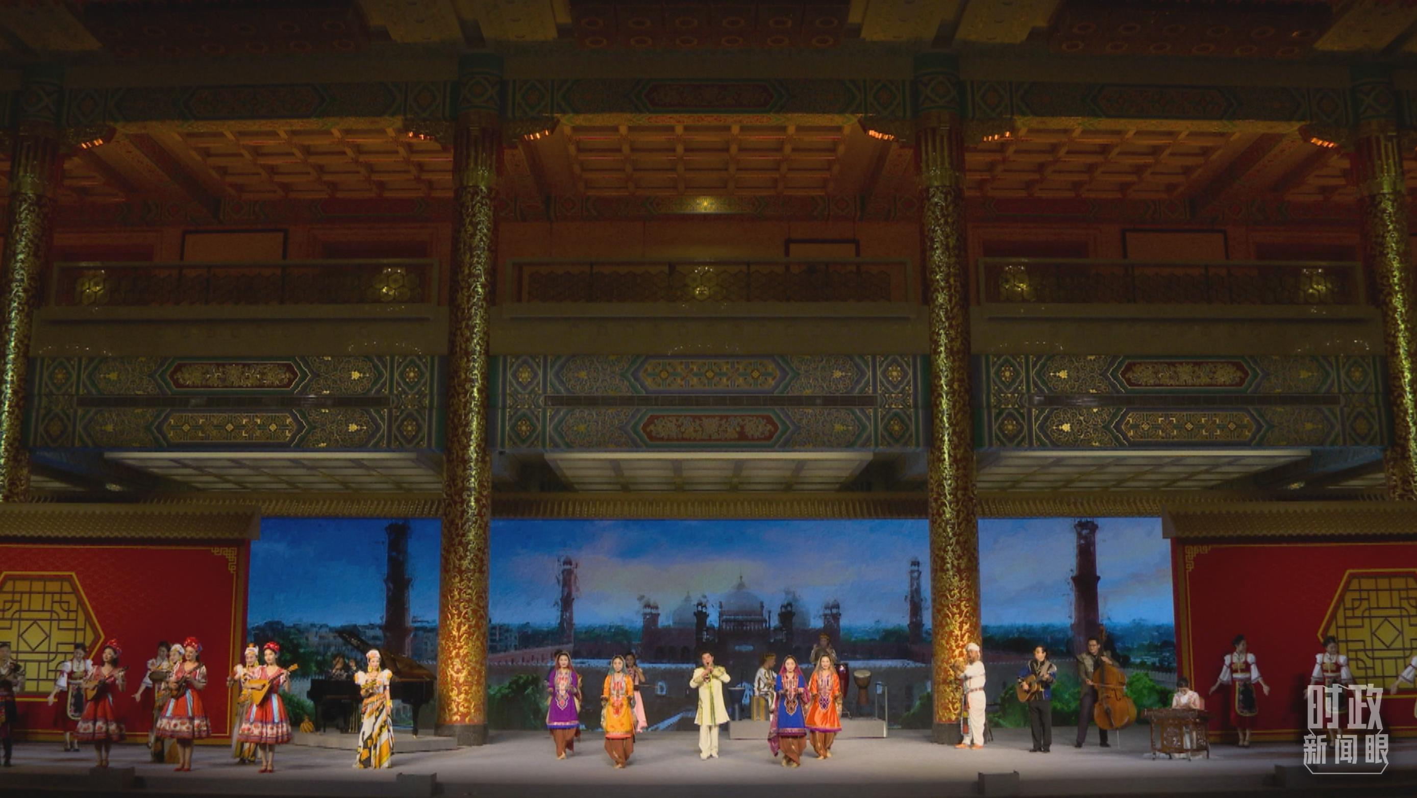 宴会后,习主席夫妇同贵宾们在金色大厅共同观看《丝路同行》文艺演出。