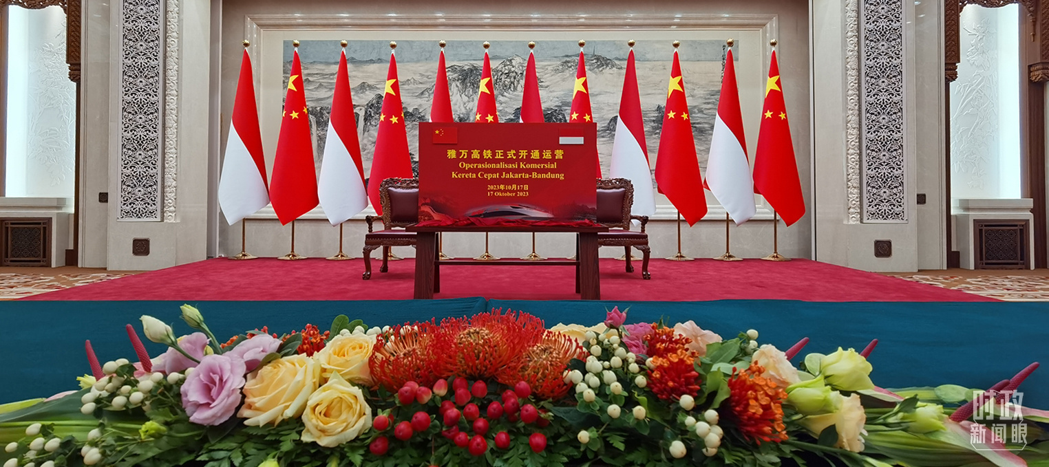 △中国、印尼两国元首当天共同为雅万高铁正式开通运营揭幕,并见证签署多项双边合作文件,这是活动开始之前的现场。(总台央视记者郭鸿拍摄)