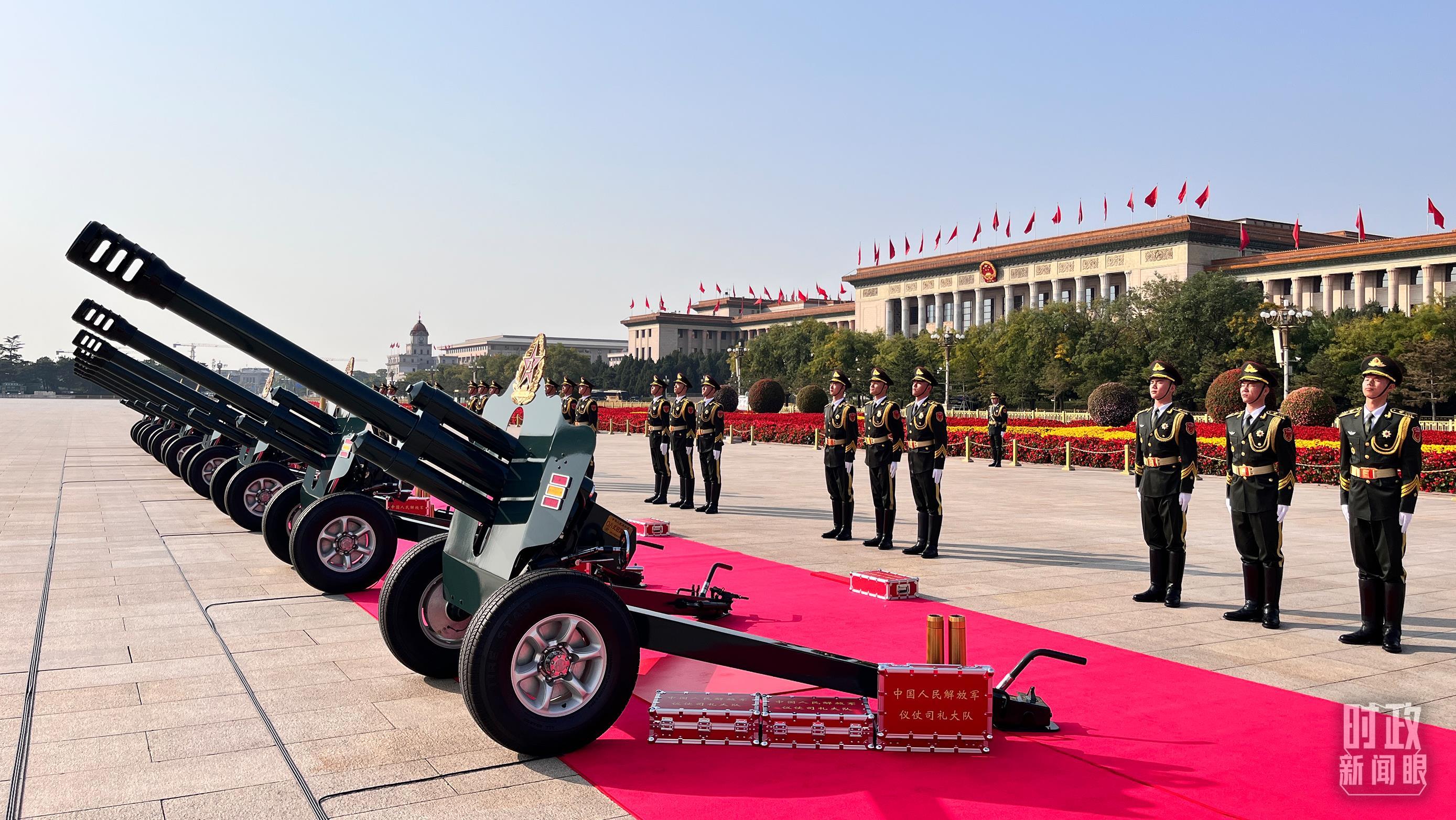 △习近平在人民大会堂北大厅为智利总统博里奇举行欢迎仪式。这是天安门广场礼炮鸣放准备就绪。(总台央视记者张垚拍摄)