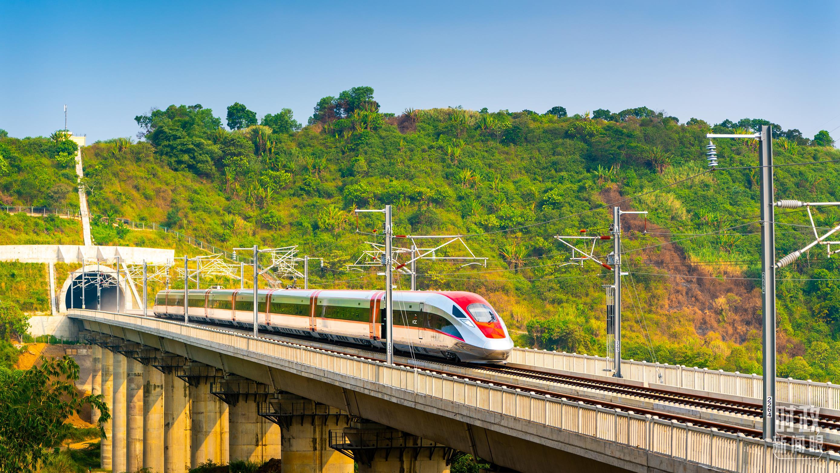 △动车组在雅万高铁线路上飞驰。(国铁集团供图)