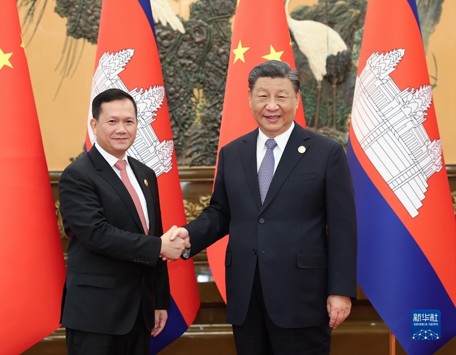 新华社北京10月19日电(记者温馨、吉宁)10月19日上午,国家主席习近平在人民大会堂会见来华出席第三届“一带一路”国际合作高峰论坛的柬埔寨首相洪玛奈。