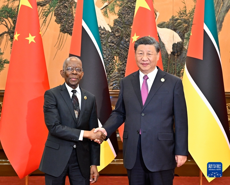 习近平指出,中莫是风雨同舟、患难与共的真朋友、真兄弟。我高兴地看到,中莫共建“一带一路”合作取得丰硕成果。中方愿同莫桑比克等非洲国家高质量共建“一带一路”,促进“支持非洲工业化倡议”、“中国助力非洲农业现代化计划”、“中非人才培养合作计划”三项合作举措落地实施,加强政策对接和合作规划,分享发展机遇、共享发展成果,助力非洲国家加快现代化进程。